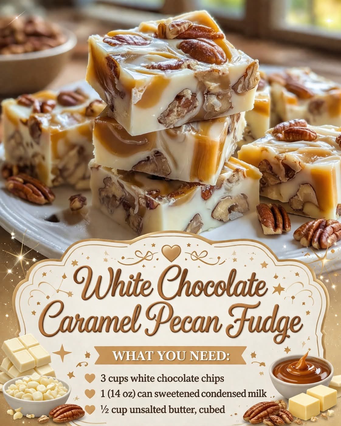 White Chocolate Caramel Pecan Fudge is a simple yet luxurious dessert that delivers big flavor with minimal effort—perfect for both beginners and experienced bakers.